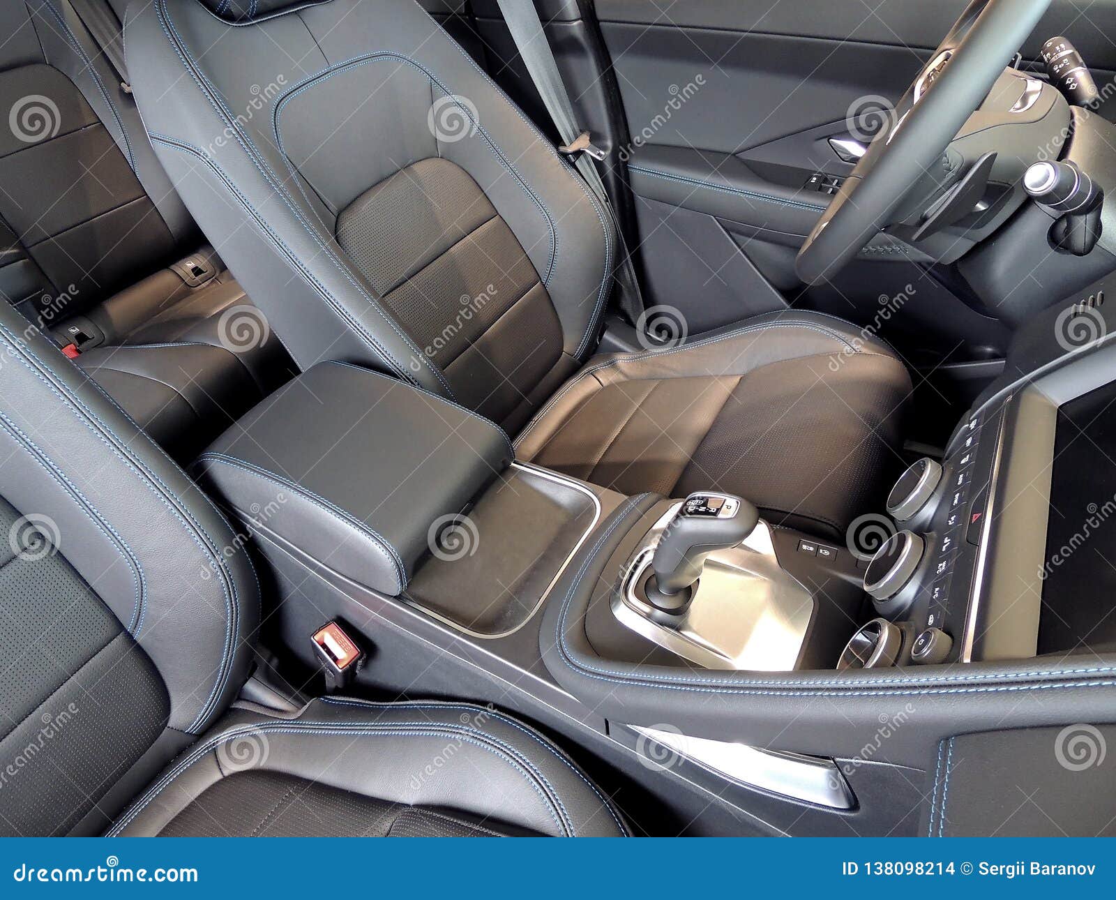 Front Leather Seats With Blue Read Stitched In Car Interior Stock Photo Image Of Passenger Stitch 138098214